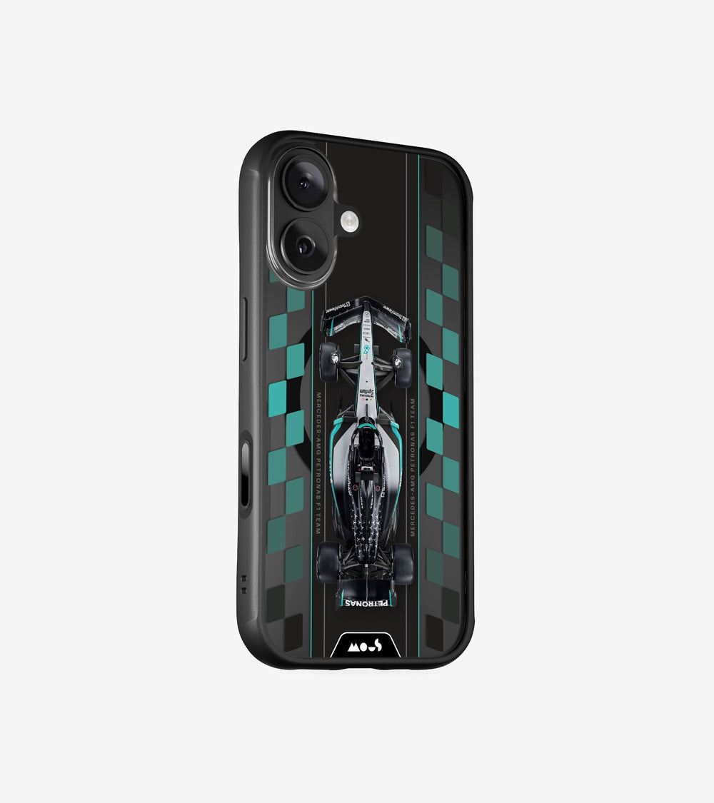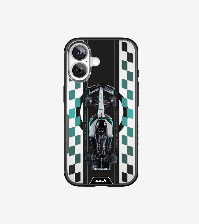• An exclusive printed case designed for the Mercedes-AMG PETRONAS F1 Team and its fans, featuring graphics inspired by the team’s iconic visual identity.