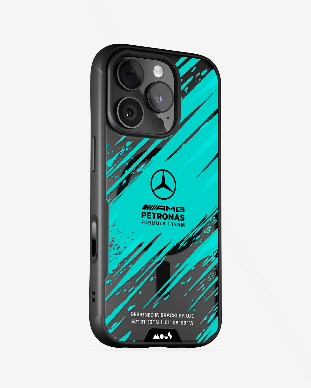 Yes, this case is an officially licensed product of the Mercedes-AMG PETRONAS F1 Team. The designs are inspired by the team’s official branding, including logo lockups and the very same teal accents found on their F1 car.