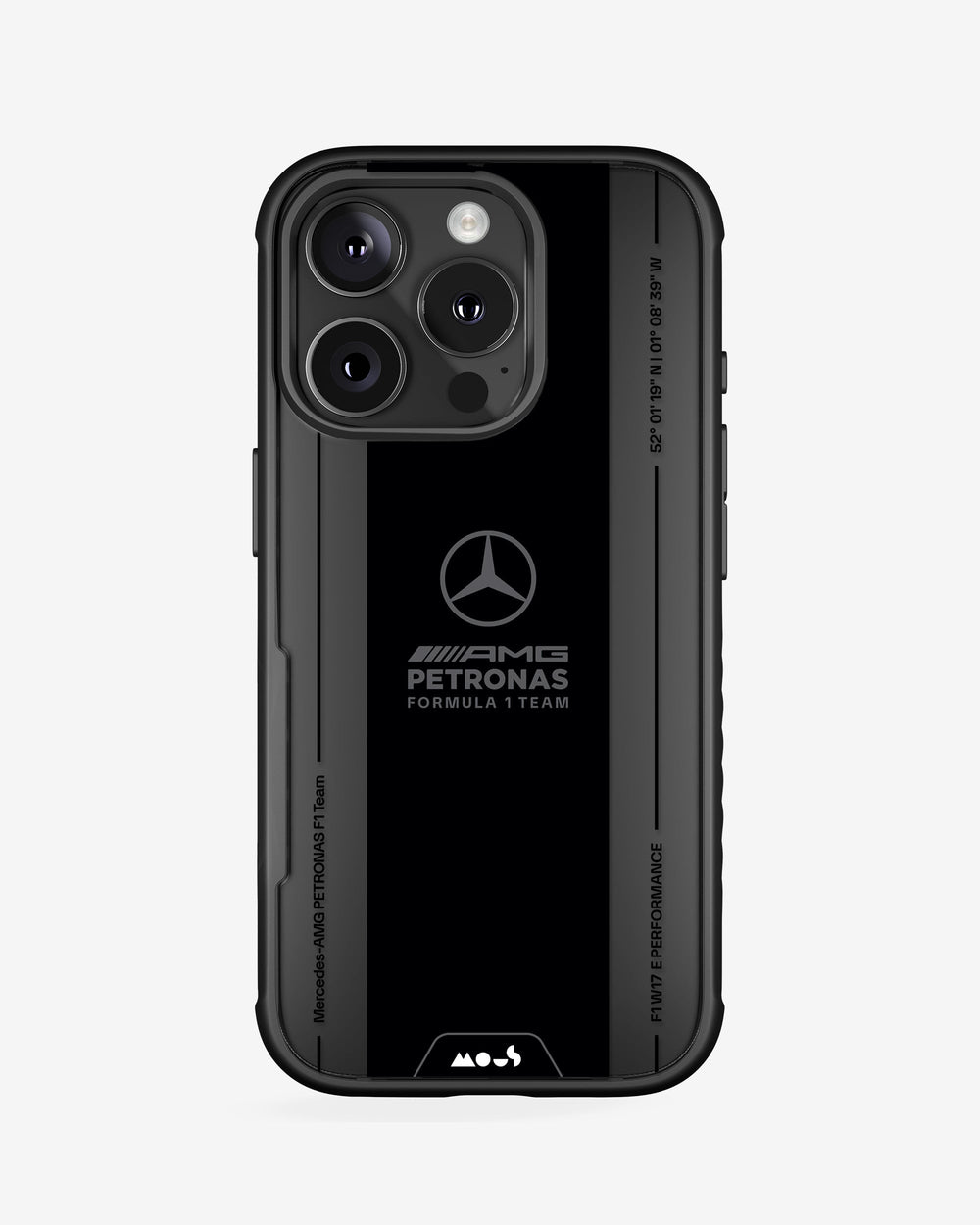 • An exclusive printed case designed for the Mercedes-AMG PETRONAS F1 Team and its fans, featuring graphics inspired by the team’s iconic visual identity.