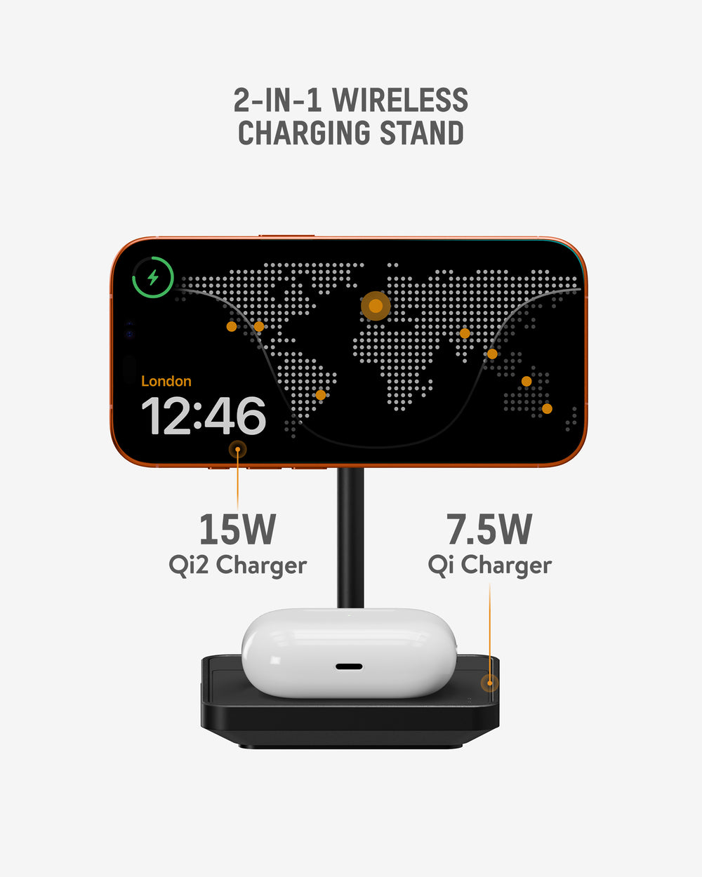 Built with official Qi2 technology, this stand delivers ultra-fast 15W wireless charging to Qi2-enabled and MagSafe® compatible devices.