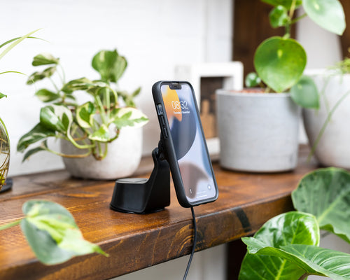 There’s a lever on the base of the suction mount which should be lifted up when you press it against your flat, shiny surface. Then push the lever down to secure it. There’s also a fastener on the mount head’s ball joint to keep it still when you’ve rotated it to your chosen angle, so make sure that’s tightened too before you plug in the cable. Finally, to attach your phone, simply connect your phone using the MagSafe® compatible magnets and you’re good to go!