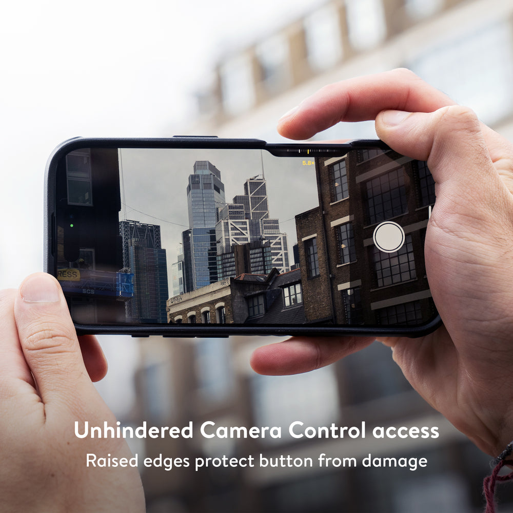Our iPhone 16 cases feature a side cutout to provide full, unhindered access to the new Camera Control button, aligning with Apple’s official accessory guidelines. We chose this approach in order to enhance the experience you have with this native feature, so you can tap, touch and swipe with ease. We’ve maintained our high protection standards by raising the edges to shield the button from impact, while super-stiff materials ensure your phone stays securely in place, even when dropped.