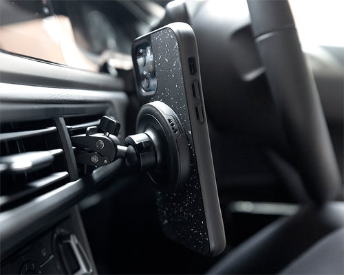A MagSafe compatible car vent mount which connects seamlessly for hands-free functionality even on the roughest roads.