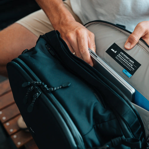The Optimal Travel Backpack is built for serious protection. A separate tech compartment is equipped with AiroFoam® impact-absorbing technology, protecting laptops and tablets from drops and shocks. It's also highly water-resistant, keeping your gear safe from rain, spills and splashes – though we wouldn’t recommend submerging it in water. Whether you're caught in a storm or on the move, your tech stays protected.