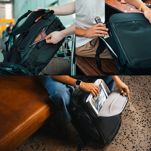 From hidden passport pockets to mesh organisers and a 1L water bottle pocket, every item has a place.