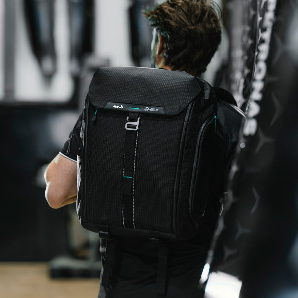 • Official team backpack, co-developed with the Mercedes-AMG PETRONAS F1 Team for elite, real-world performance.