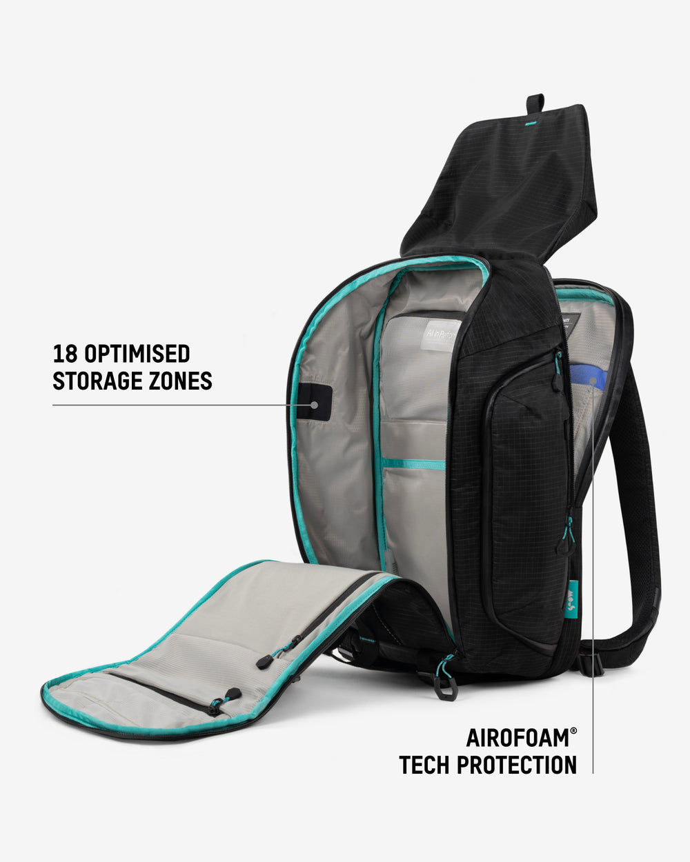 18 purpose-built compartments, internal and external, for all your essentials – without unnecessary bulk.