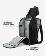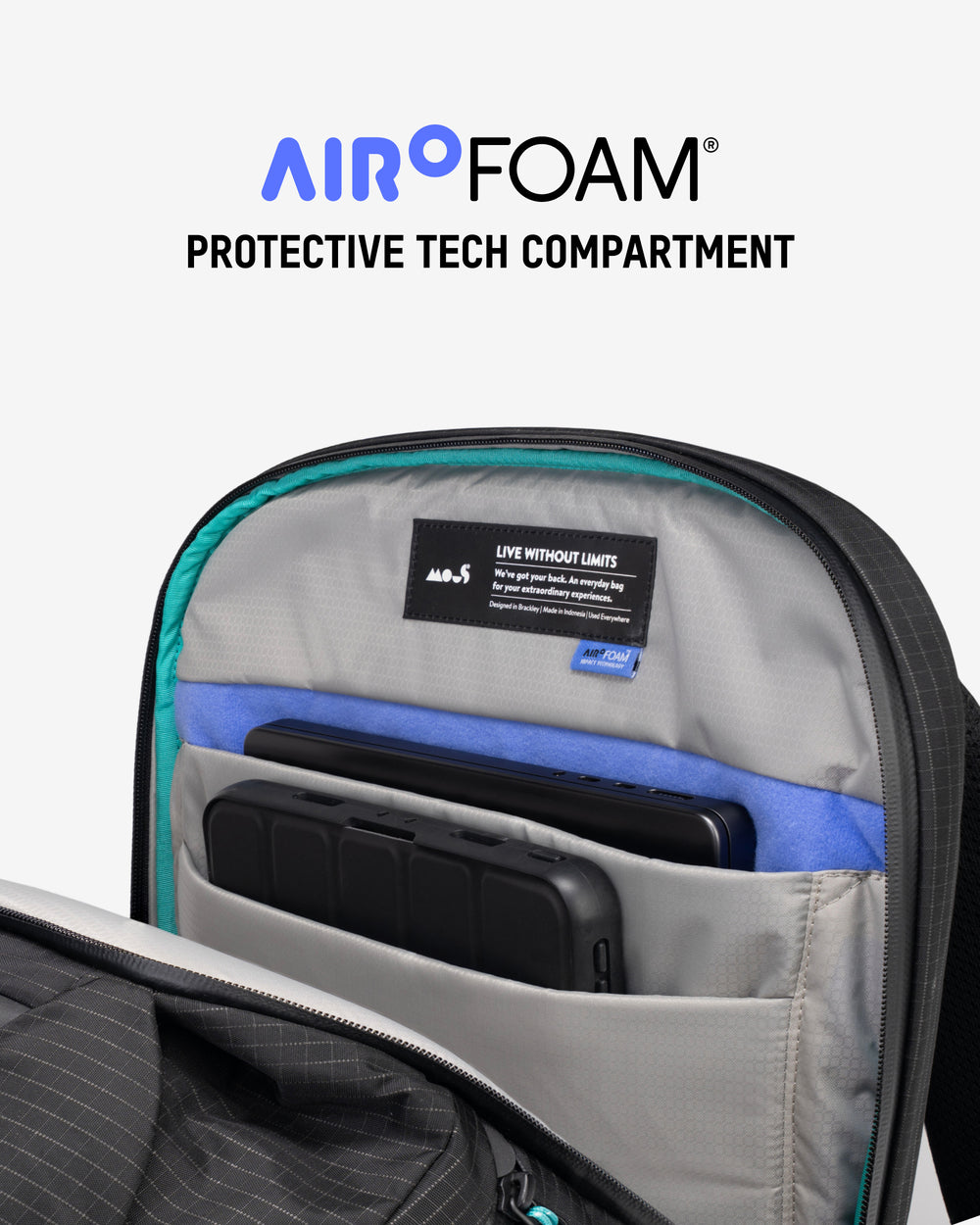 Impact-absorbing AiroFoam® lines the tech compartment to shield laptops and tablets from drops and shocks.