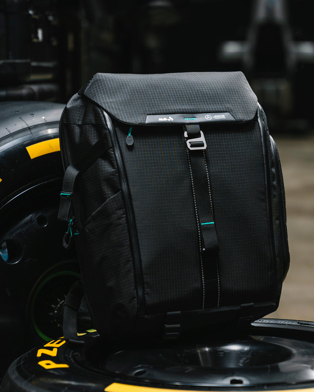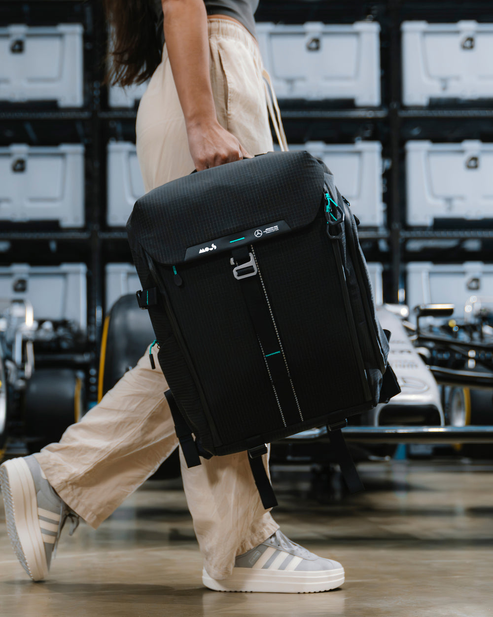 • Official team backpack, co-developed with the Mercedes-AMG PETRONAS F1 Team for elite, real-world performance.