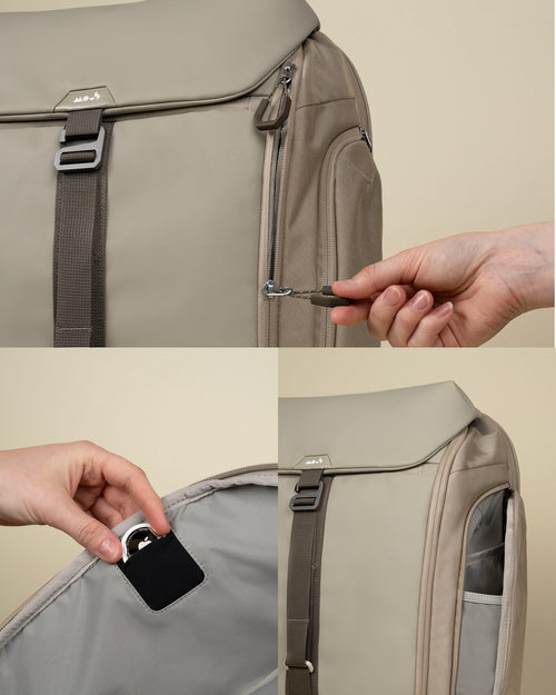 • 18 purpose-built pockets, including stretch mesh, quick-access, hidden AirTag and water bottle holder.