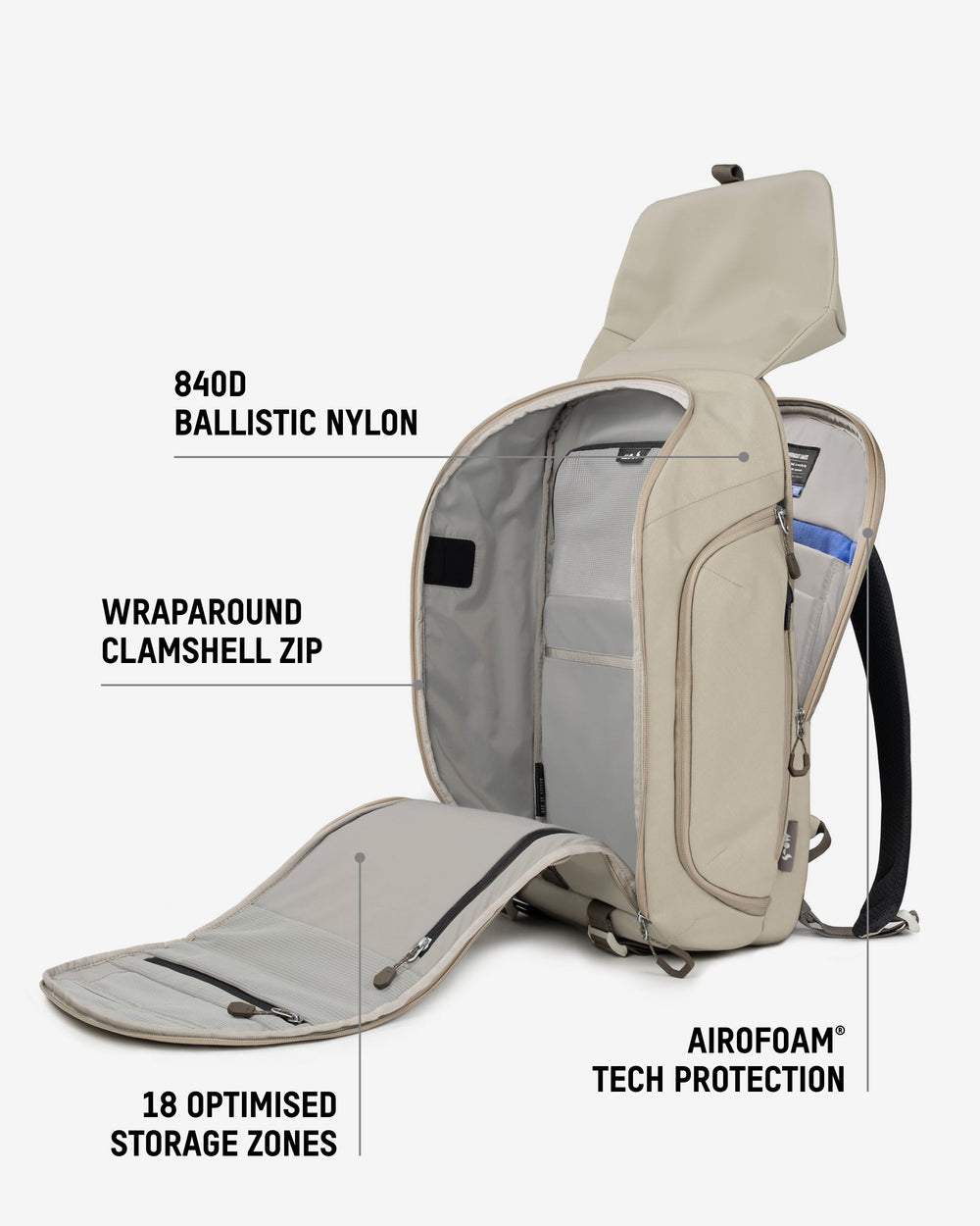 • Protective tech compartment with AiroFoam® absorbs shock from drops.