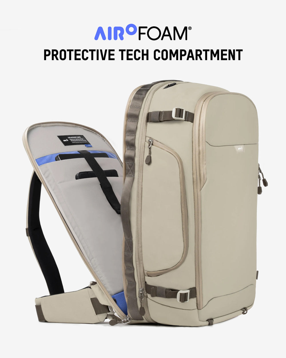 A carry-on backpack designed for seamless travel. With expandable storage, smart organisation, AiroFoam® tech protection and durable materials, it’s built for every journey.