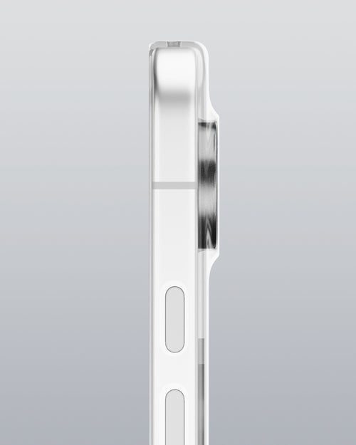 A rigid, impact-resistant material that gives Super Thin its structure and durability. It resists torsion to maintain shape on impact, while discreet relief cut-outs in the corners help flex the case during device insertion, reducing stress and the risk of cracking – a common issue with other ultra-thin cases.