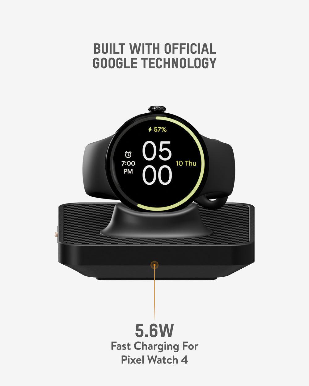 • It provides fast 5.6 W contact charging, powering your Pixel Watch 4 to a full charge in around 38–45 minutes.