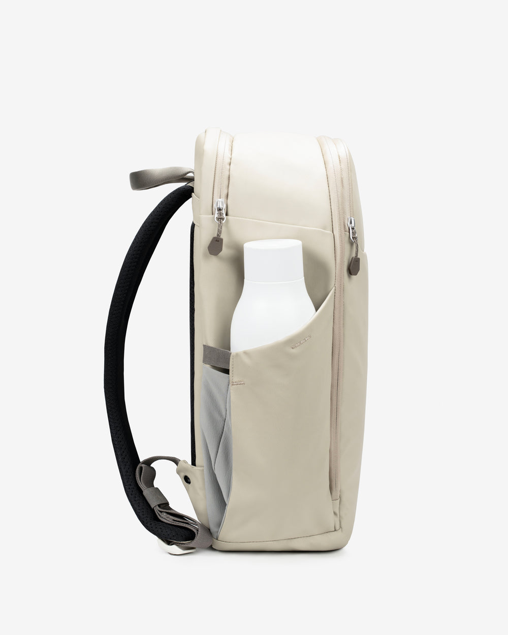 Sure thing. The external bottle pocket fits reusable bottles up to 1 litre while the 13 internal pockets and compartments keep tech, accessories and essentials organised.